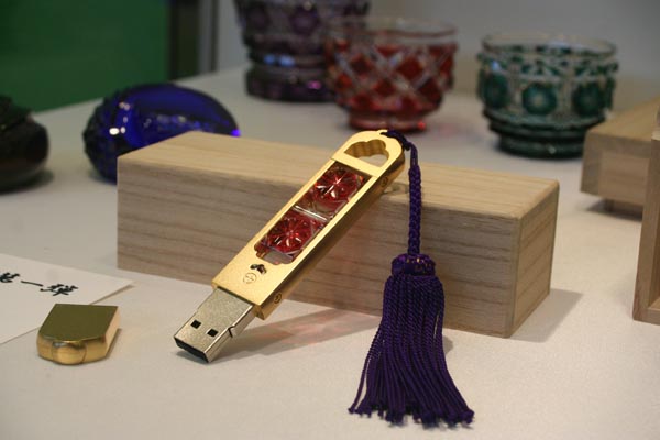 そこに、この薩摩切子で装飾されたUSBメモリーが。