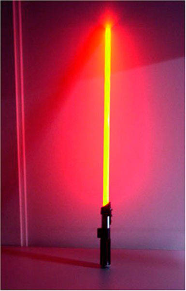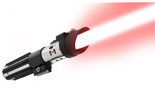 ダースベーダーのヘルメット内でセンサーが感知した脳波を無線でライトセイバーに送る。