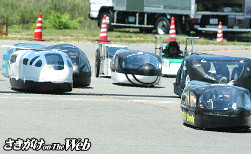 高校生を対象とした電気自動車の省エネレース「エコノムーブ大会」と「ソーラーバイシクル大会」が17日、大潟村のソーラースポーツラインで開かれた。