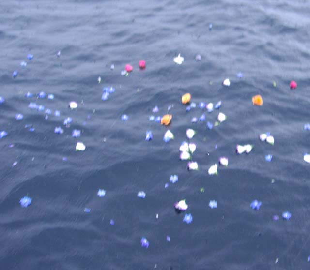 あらかじめ、紙の袋に粉末に砕いたお骨を、そのまま袋ごと海へ