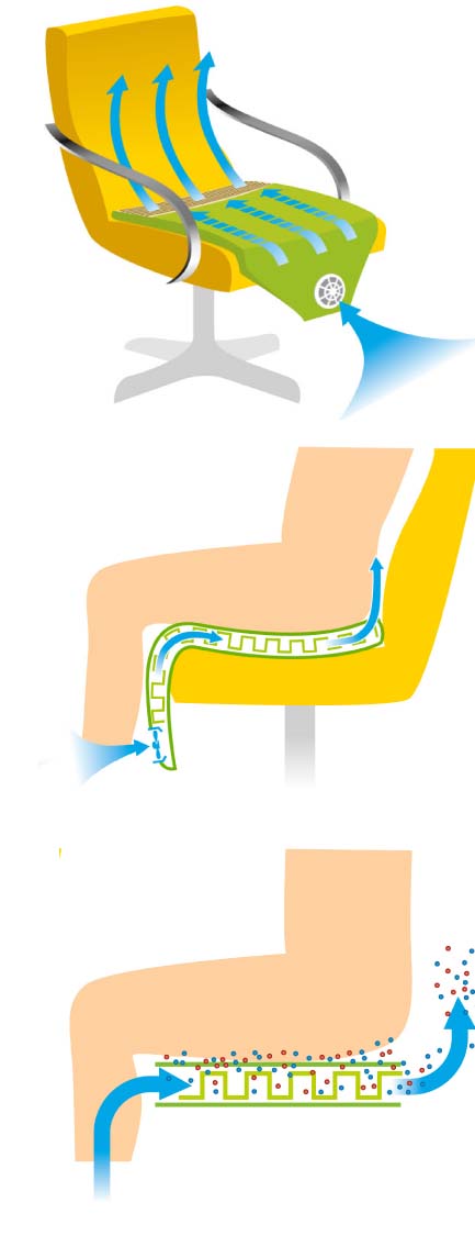 座面のむれる通気の悪いところに空気を通す。