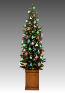 星や雪だるまの形をした合成樹脂に無機ELの薄膜を装着し、発光させる。点滅や点灯なども自由に調節できる。