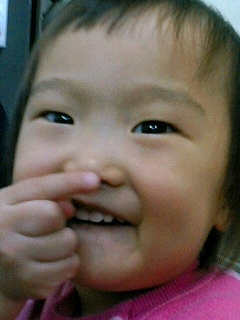 言葉にならないような奇声を発して、キャッキャお猿さんみたいにはしゃいで、名前呼ばれた時だけ「ハイッ」って、、、、最近では携帯カメラにポーズをとるということを覚えてくれました(´∀`)