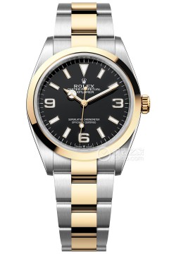 ロレックス新しいエクスプローラー モデルの発売により、エクスプローラー コレクションを拡充しました。エクスプローラー ツートン モデルは、36mm オイスター パーペチュアル ケースを備え、初めてオイスタースチールと18金イエローゴールドを組み合わせたものです。ベゼル、リューズ、ブレスレットのセンターリンクは18金イエローゴールド製で、ケースとサイドリンクはオイスタースチール製です。ブラック文字盤と組み合わせることで、このモデルは洗練さと優雅さを醸し出します。クリーンなデザインで知られるエクスプローラーは、非常に視認性の高いブラックの文字盤、大きなアワーマーカー、そして特徴的な3、6、9の数字で時計職人に愛されています。本日は、この新しいロレックス モデル (モデル: M124273-0001) を詳しく見ていきます。この時計は、3、6、9位置に大型アワーマーカーを備えた特徴的なブラックの文字盤を備えています。象徴的なインデックスにはクロマライト コーティングが施されており、暗闇でも優れた視認性を確保しています。エクスプローラーのクロマライト アワーマーカーと針には蓄光素材がコーティングされており、暗闇で長時間青い光を発するため、一目で読み取ることができます。