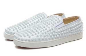 偽 ブランド サイト_お得2020ルブタン 靴 コピーローラーボートフラットスパイクススリッポンスニーカーホワイトLOUBOUTIN ROLLER BOAT