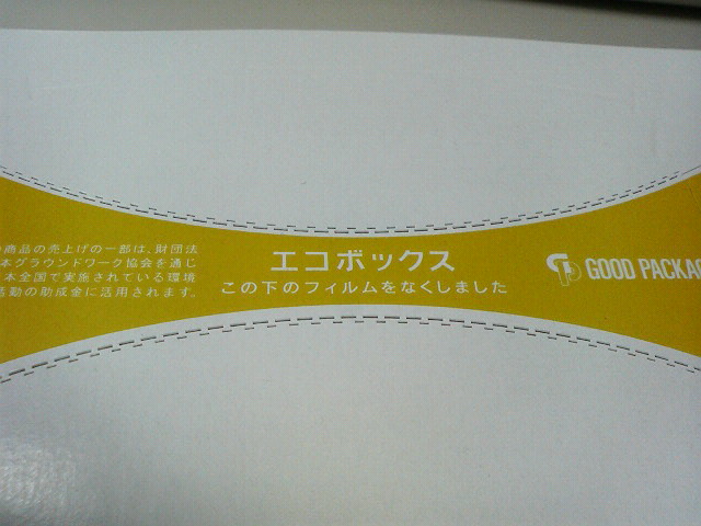 会社で使っているティッシュです。取り出し口が、骨のような形をしています。これによって、フィルムをなくしているそうです。これなら、無駄な資源も使わないですし、リサイクルし・・・