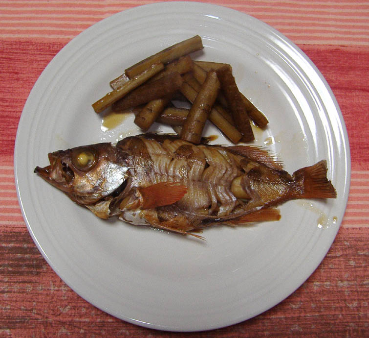 昨日は土曜日でもあるので、早めに帰ることに。鮮魚へ向かった。7時ちょっと前で、数が少ないかと心配したが”メバル”と目が合った。メバルはやっぱり煮付け。手で握れるくらいの・・・