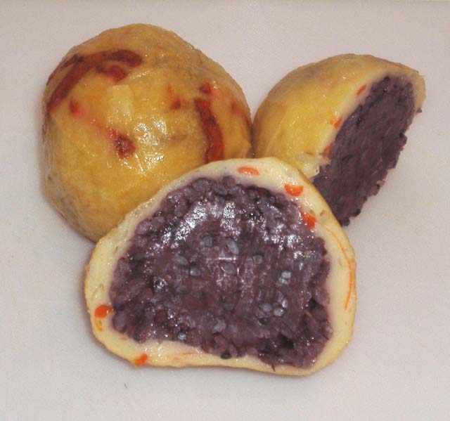 ゴミ袋を買って、表へ沖縄の「わしたショップ」がすぐ近く。久しぶりに立ち寄った。ケースに見かけないもの発見。「かまぼこ」と書かれた表示のみ。原材料を見ると黒米など。夏バテ・・・