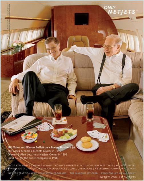 Bill Gates氏とWarren Buffett氏の二人この広告は、プライベート・ジェット・サービスのnetjetshttp:/