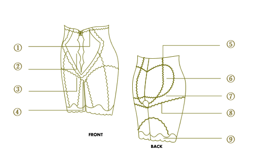 【ウエストをしっかり固定し、ヒップをひきしめ持ち上げて、太モモにかけての理想的なラインをつくります】1 ウエストは、高い位置でキープし、やや深めの股上丈でウエストライ・・・