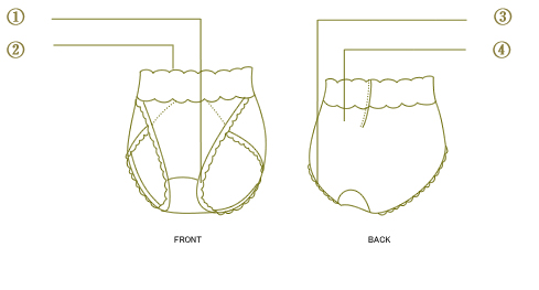【ひきしまったウエストラインを引き出します】1 フロント部素材は伸びない素材のサテンとマーキゼットレースに光電子繊維からなる4重構造でスッキリサポートします。2 フ・・・